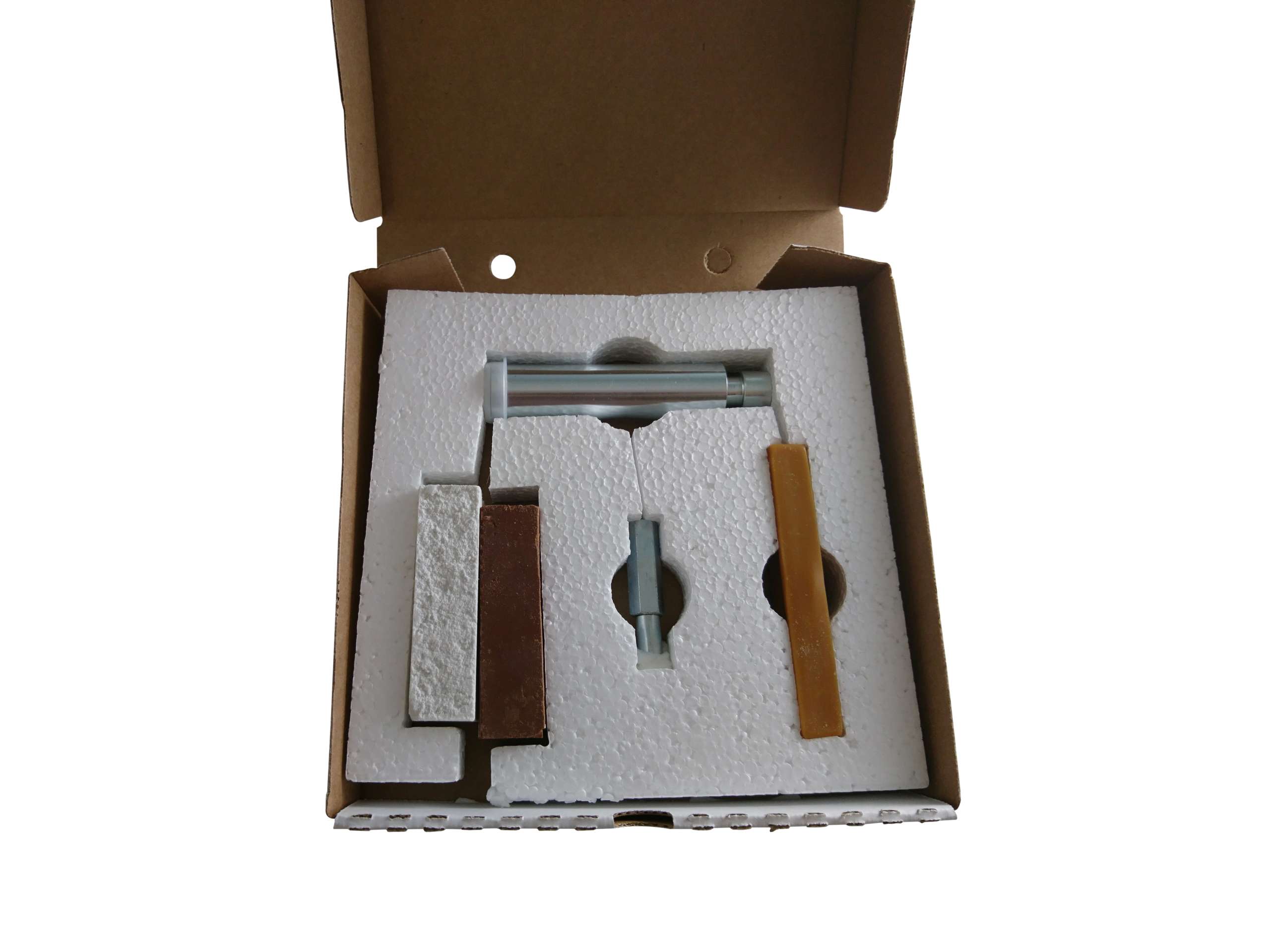 The kit comprises of the Large Mandrel, the Small Mandrel, Compound 1, Compound 2, Carnuaba Wax Stick.