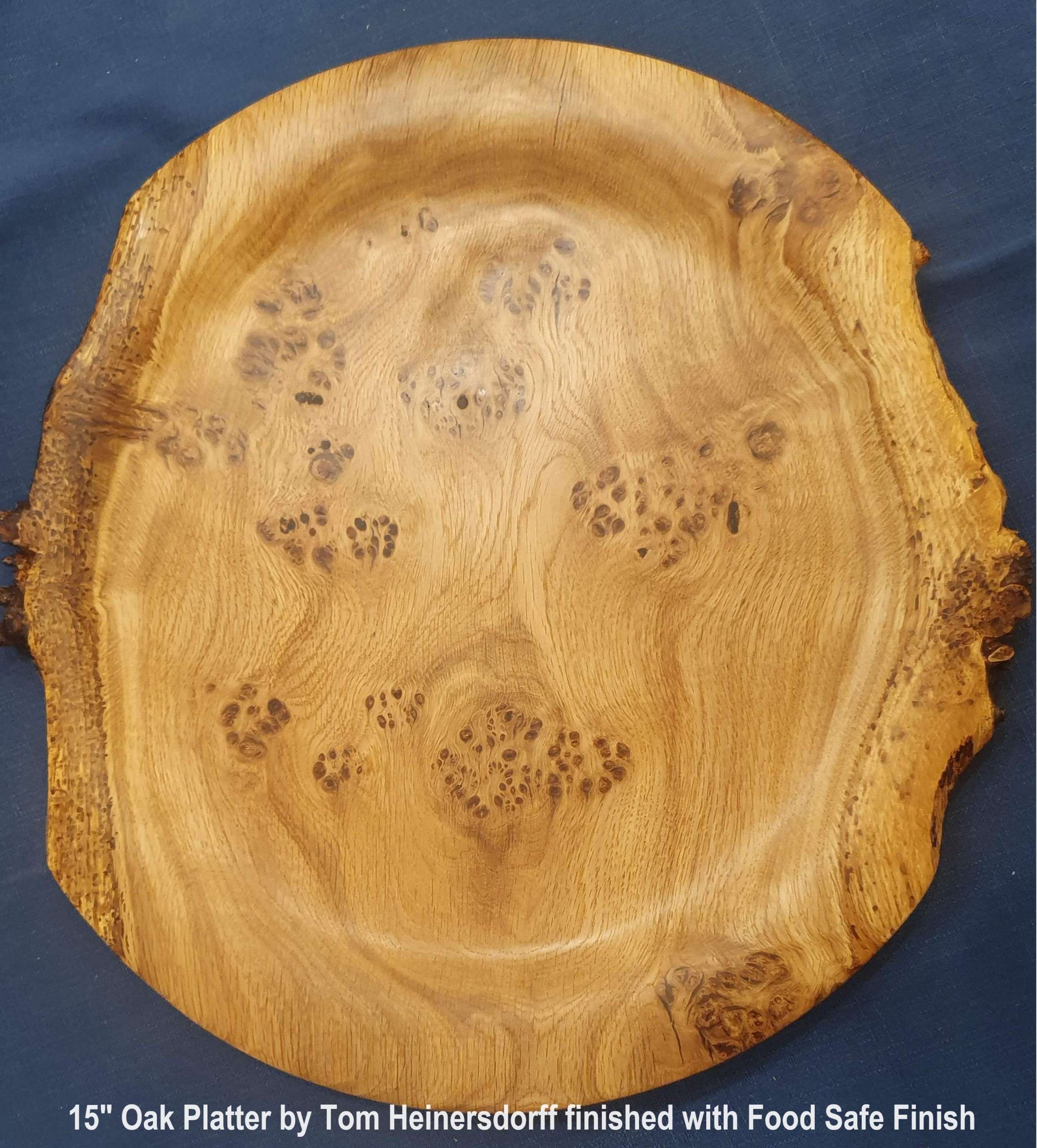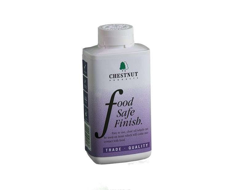 Food Safe Finish is a clear, food grade mineral oil. We use a thin grade of oil to allow it to soak into bare timber which then protects it against water splashes etc whilst not tainting or affecting the food in any way.